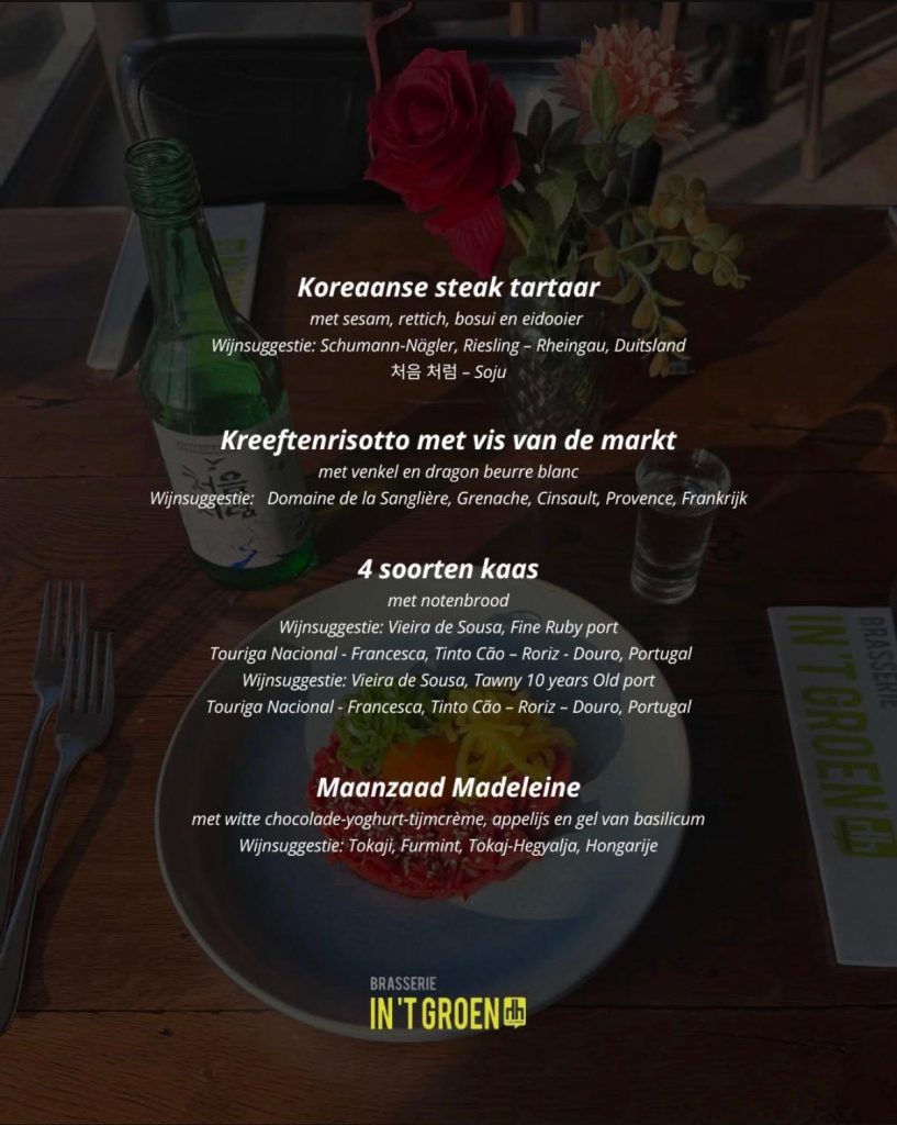 Weer een heerlijk nieuw menu van onze chef! 🍴✨ Kom jij genieten van de creativiteit van onze chefs? En natuurlijk schenken we er ook een bijpassend glas wijn bij, als je dat wilt! 🍷🍽️ Laat je verrassen door de smaken en kom snel langs! Klik voor het actuele menu